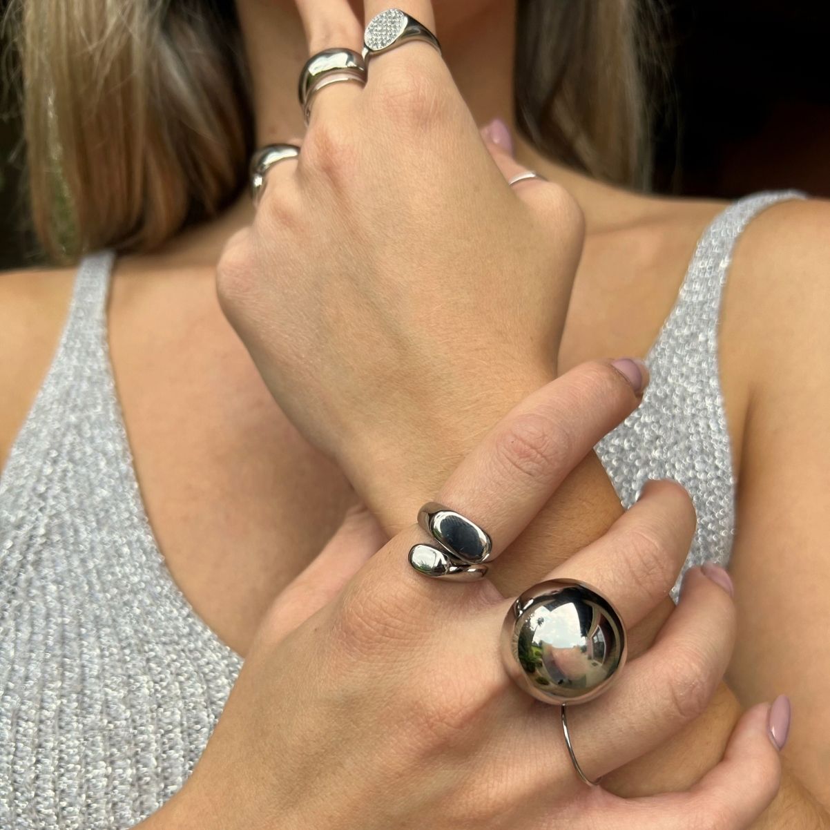 L'anello Halo è waterproof e regolabile, un accessorio dal design contemporaneo che unisce eleganza e carattere. La sua forma aperta con due estremità asimmetriche crea un effetto audace ma raffinato, perfetto per chi ama distinguersi con stile.