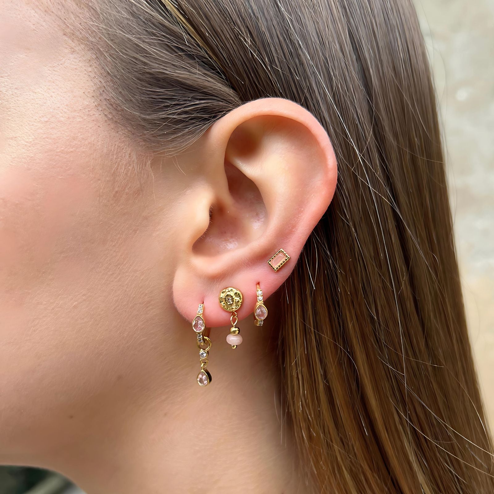 Venduti in coppia e waterproof, gli orecchini Giselle Mini sono un concentrato di eleganza in un formato discreto. Il loro zircone rettangolare dai toni delicati cattura la luce con raffinatezza, donando un tocco di classe ad ogni look.